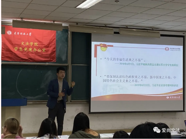 为了让同学们更好地了解党、靠近党、宣传党的伟大历史与不朽精神,文法学院于4月27日中午12:40邀请了马克思主义学院王锡森老师在天津科技大学滨海校区图书馆一阶进行党史党课宣讲。文法学院第25期入党积极分子、第13期发展对象与学生党员参加了本次活动。