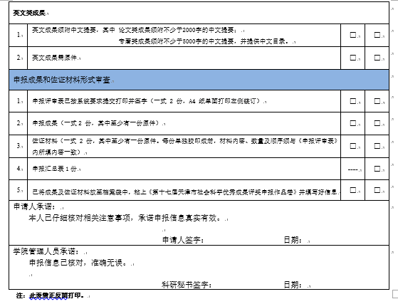 此次天津市社会科学优秀成果奖评选工作的新变化较多,为确保申报质量,社科处制作了“形式审查表”、“佐证材料封面及目录”、“往届作品重新申报申请书”等材料,方便老师们根据自身需要进行使用,规范了申报程序,也方便了申报老师。社科处在工作中强调在申报工作中要以良好的工作作风服务老师,真正为教师办实事、办好事,切实为申报工作保驾护航。