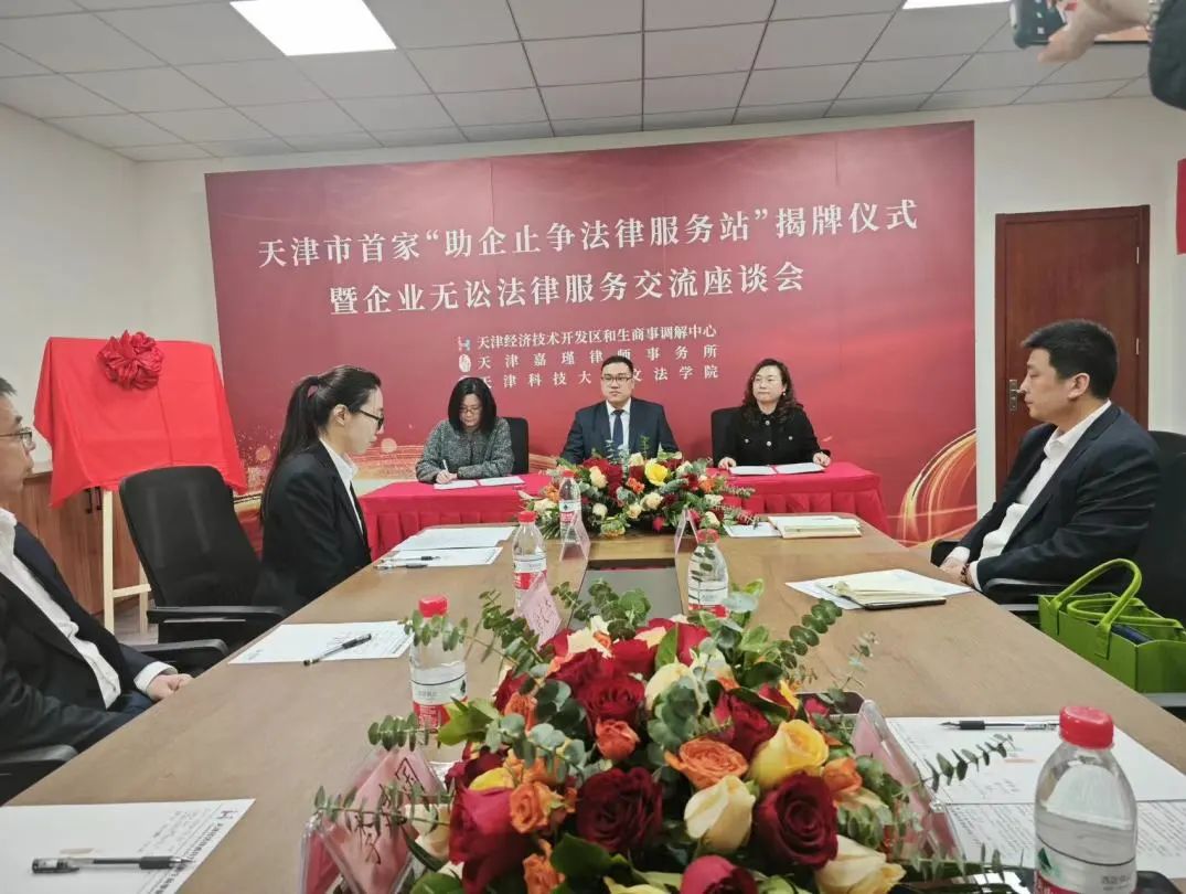 为了坚持和发扬新时代“枫桥经验”,助推经开区法律服务高质量发展,发挥商事调解优势作用,降低企业纠纷处置成本,探索开展企业无讼服务。2024年3月29日上午10点至11点,天津经济技术开发区和生商事调解中心联合天津嘉瑾律师事务所、天津科技大学文法学院及经开区企业代表,在天津经济技术开发区和生商事调解中心举办天津首家“助企止争法律服务站”落成仪式。