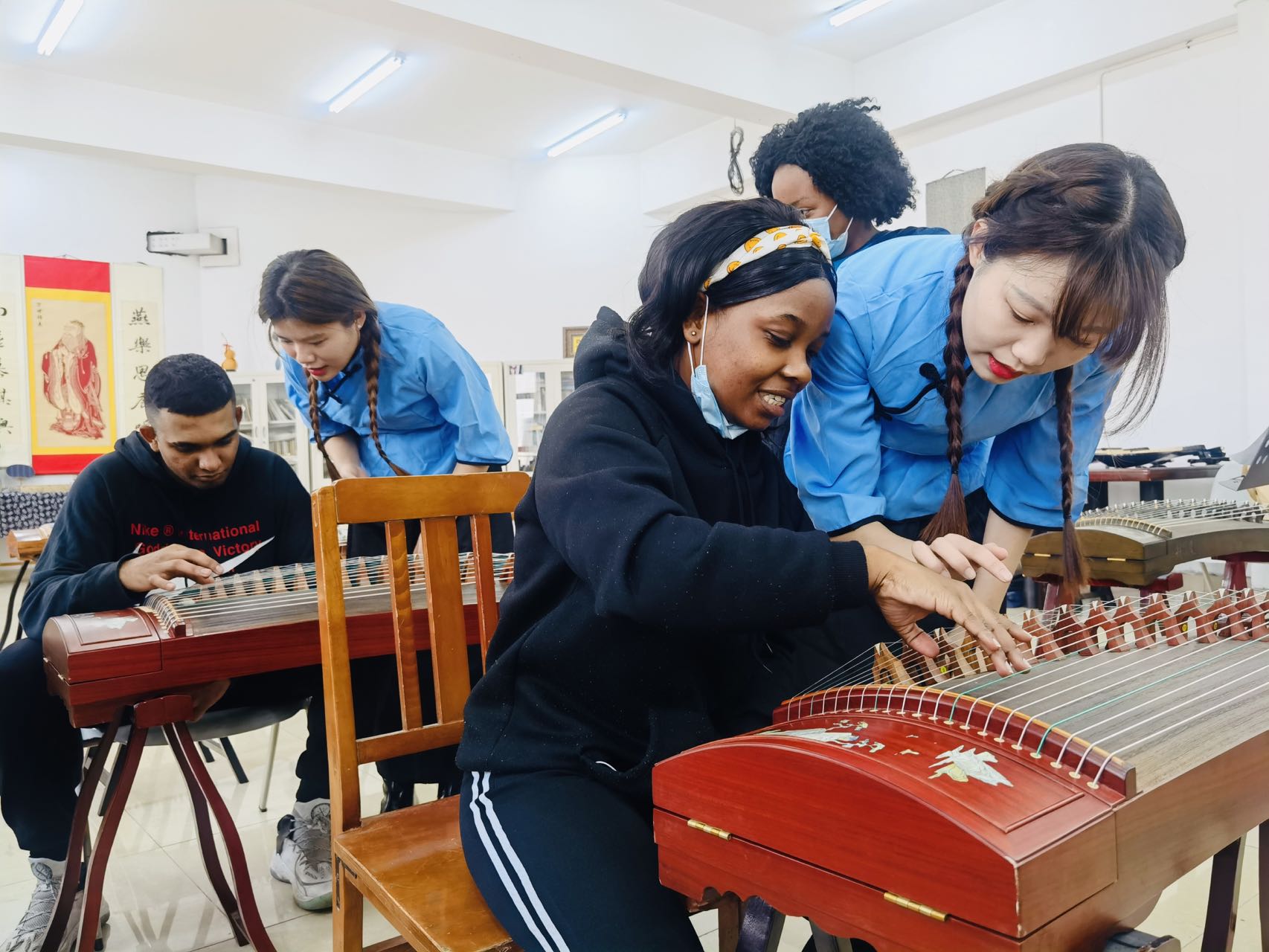 为认真学习贯彻习近平总书记给北京大学留学生回信精神,提高留学生教育质量水平,培养更多知华友华的优秀人才。11月10日,国际交流处联合文法学院汉教系组织在校留学生来到位于7-417的留学生中华传统文化体验基地,开展为期半天的中华才艺体验活动。