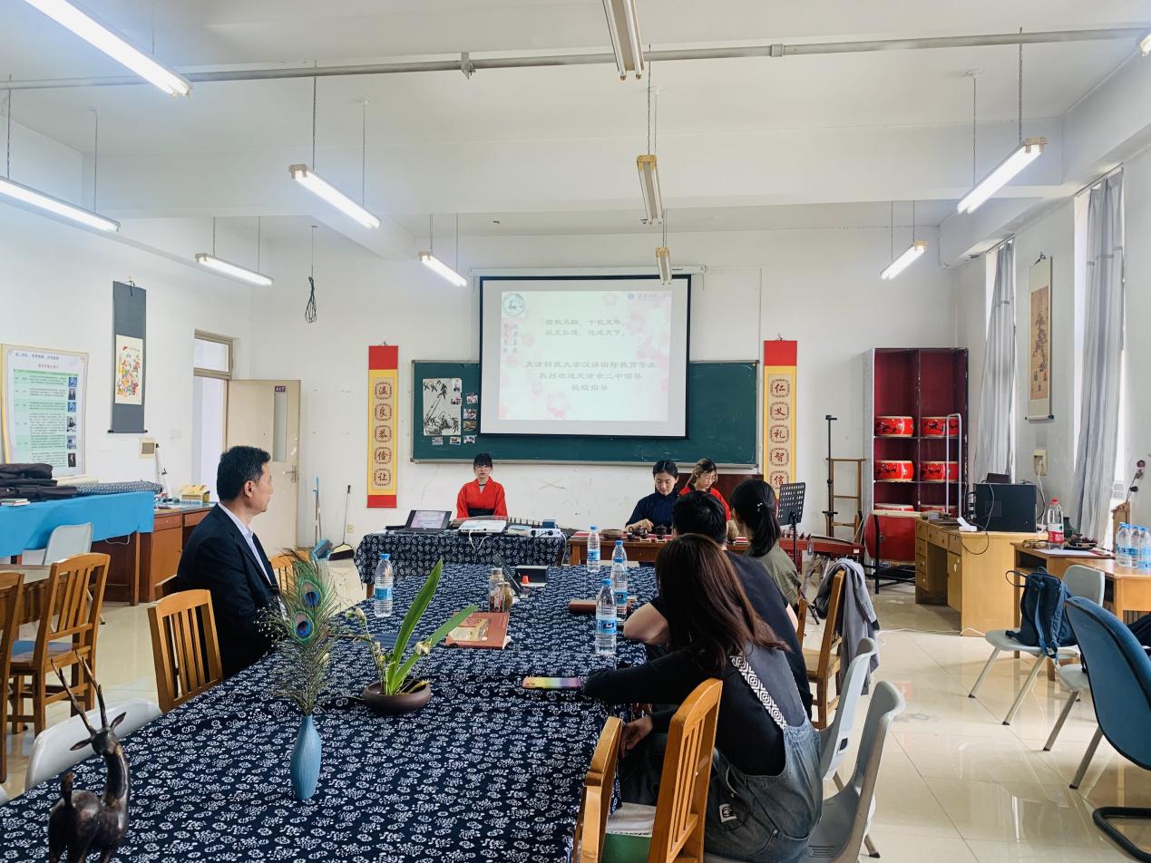 5月13日下午,天津市二中副校长高欣、教务处主任朱峰、副主任李静老师一行到访我院。院长吴振军和汉语国际教育系主任赵林晓在中华才艺室会见了客人。高校长此行来访的主要目的是面向我院汉语国际教育专业毕业生选拔语文教师与语文教学实习生。